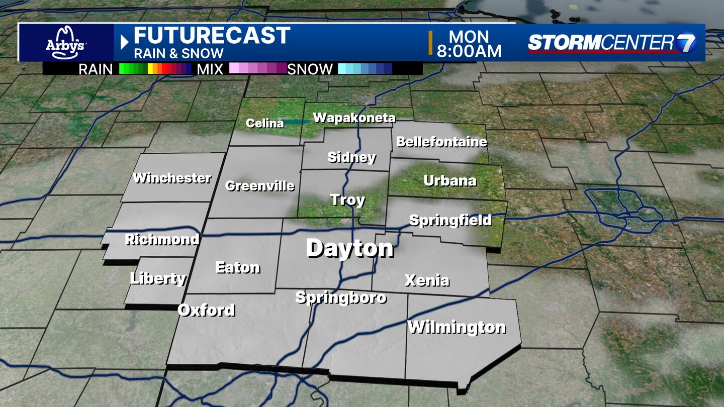 WEDNESDAY: Mostly cloudy with showers and storms likely off and on. An isolated strong storm is possible, but confidence is not overly high right now as exact details need to be ironed out. Highs in the middle 70s.