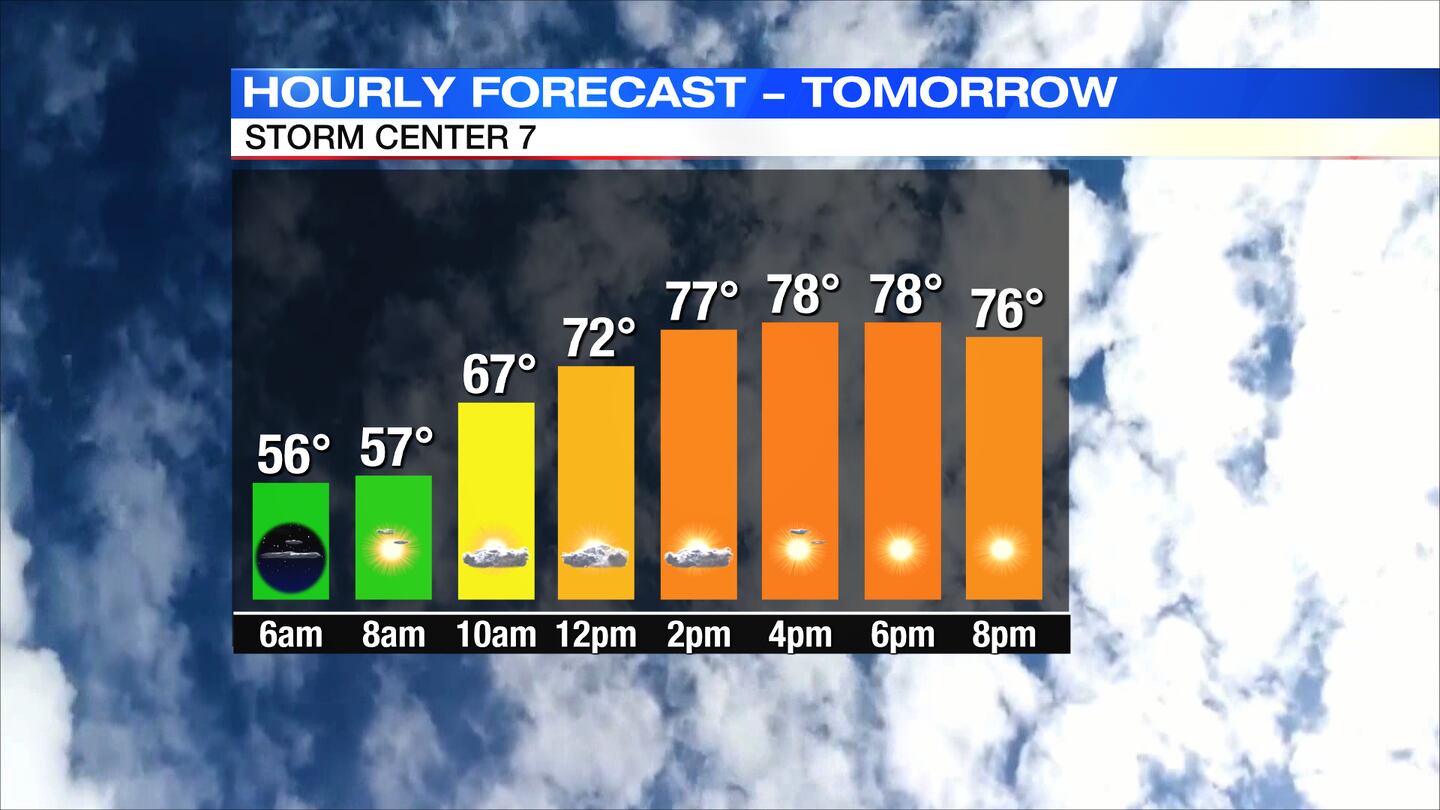 SUNDAY: Sunshine and staying warm. Highs in the middle 80s.