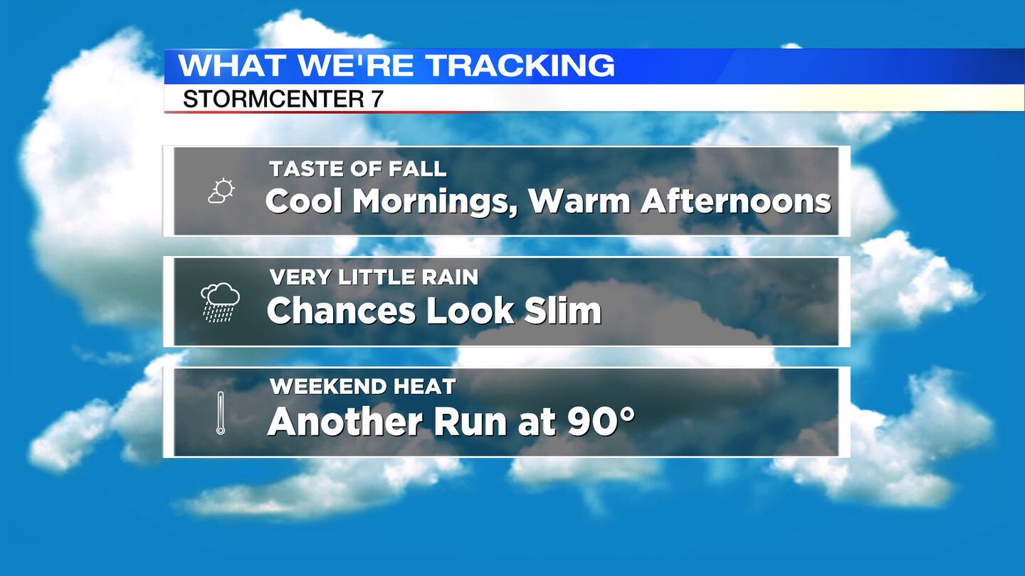 MONDAY: Summer isn’t done with us yet. Mostly sunny with highs around 90 or 91