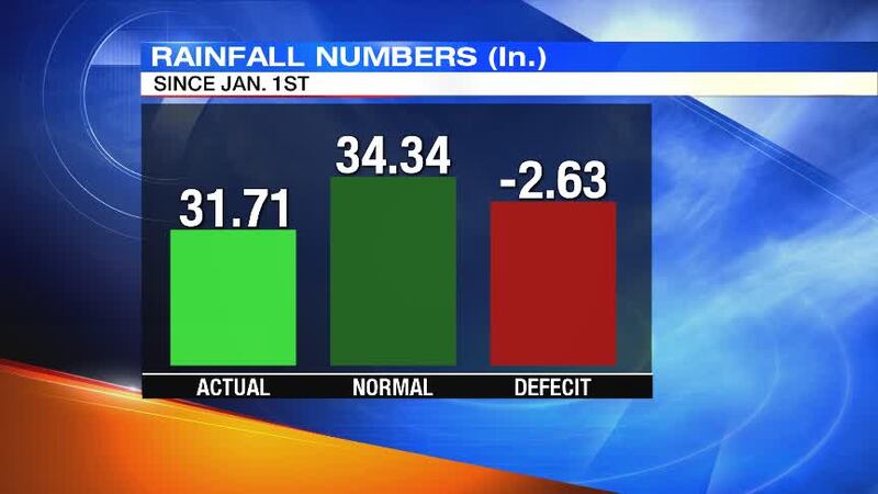 Since Jan. 1, we have received 31.71 inches of rainfall. This is 2.63 inches below normal for this time of year. However, there is some good news: some rain is on the way. Unfortunately, it’s not going to be enough to get us out of this defecit.
