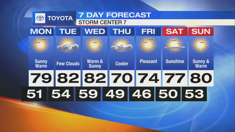 WEDNESDAY: Another sunny and warm day with a high in the lower 80s.