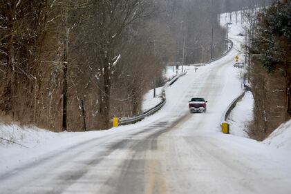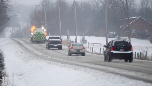PHOTOS: Snow hits Miami Valley An ODOT truck plows and salts U.S. 68 south of Xenia after another winter storm blew through the area early Wednesday morning. TY GREENLEES / STAFF