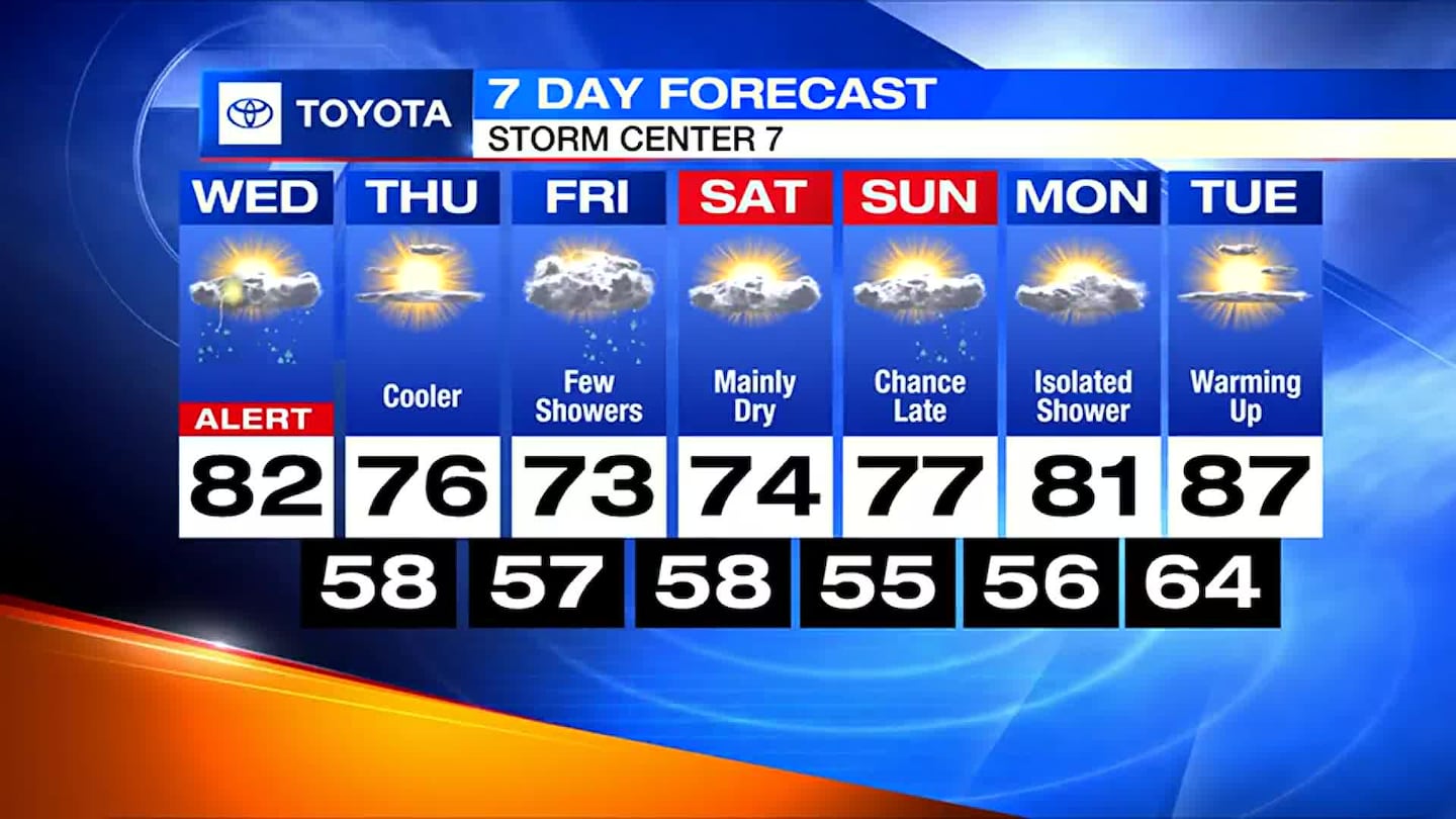 THURSDAY: Partly sunny and cooler with highs in the middle to upper 70s.