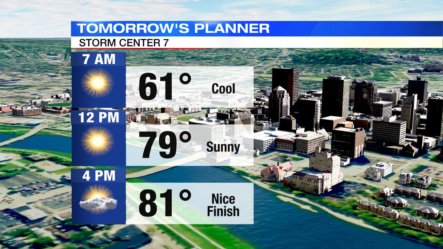 WEDNESDAY: Another sunny day and warm with highs in the lower 80s. A few clouds possible late with an approaching cold front. No rain is expected.