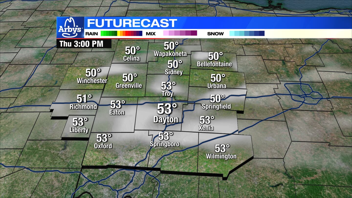 THURSDAY: Filtered sunshine on Thursday as high-level clouds start to arrive from the southwest. More clouds are expected by the evening with showers possible at night. It will be mild during the day with above-normal temperatures. Highs climb into the lower 50s.