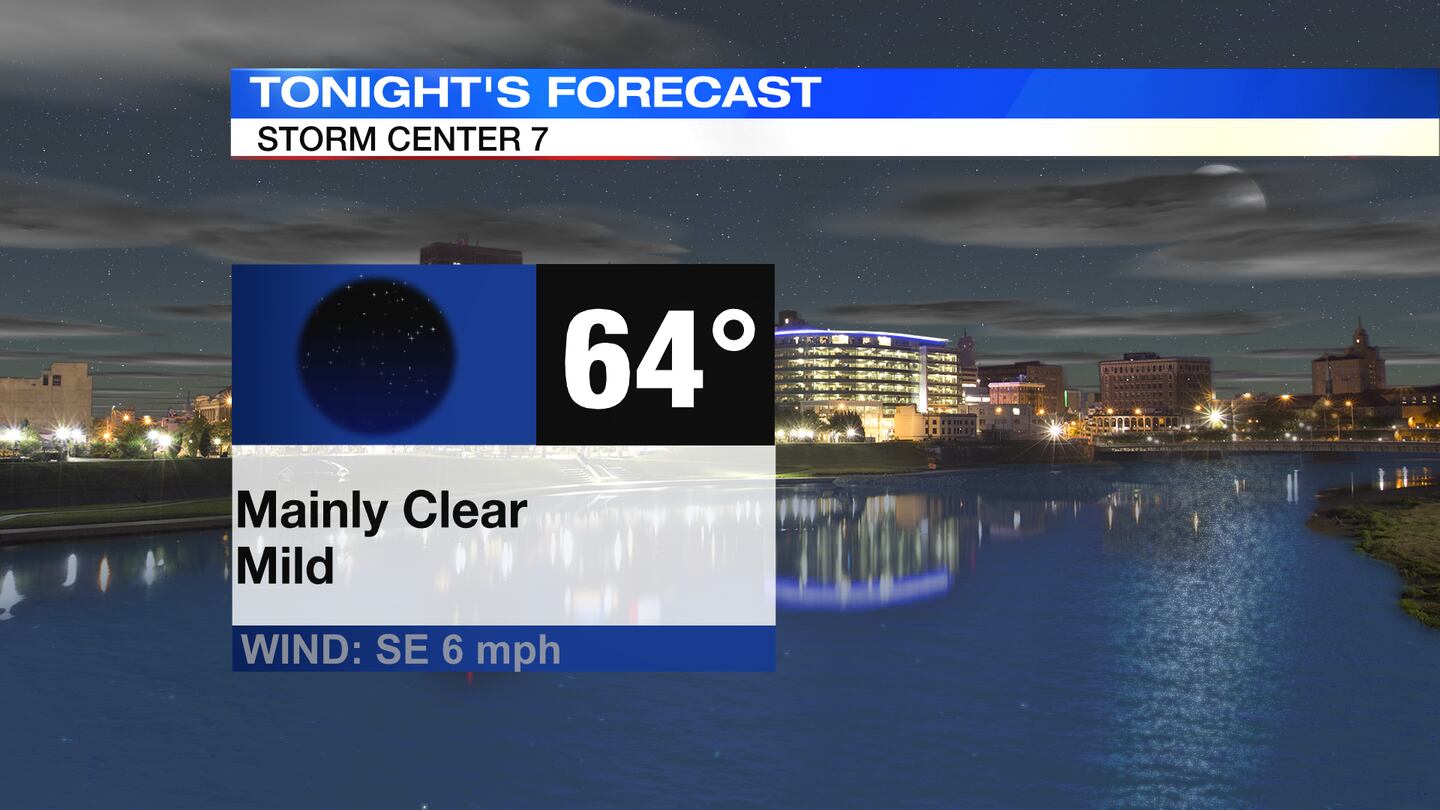 OVERNIGHT: Mainly clear and warm with lows in the mid-60s