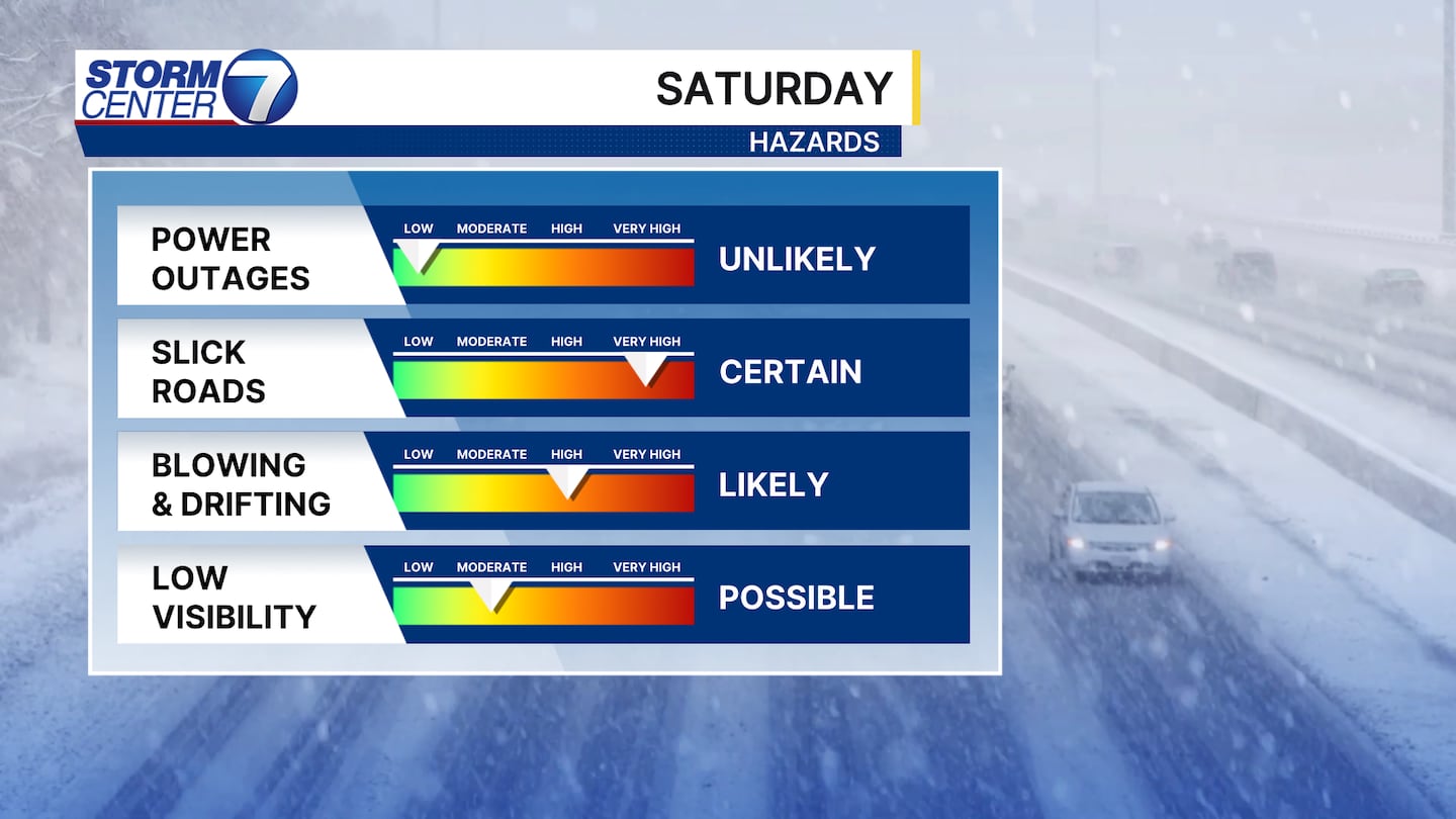 TIMING: Snow flurries and light snow showers are possible tonight into Saturday morning. The main event with the steady and heavy snow comes in around lunchtime on Saturday. Snow will taper off between 9PM and midnight.