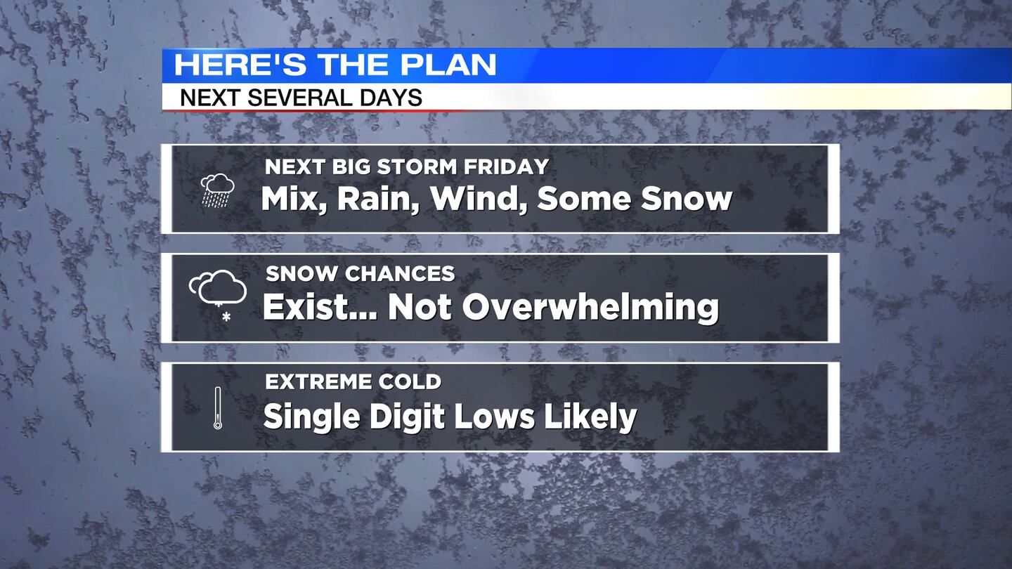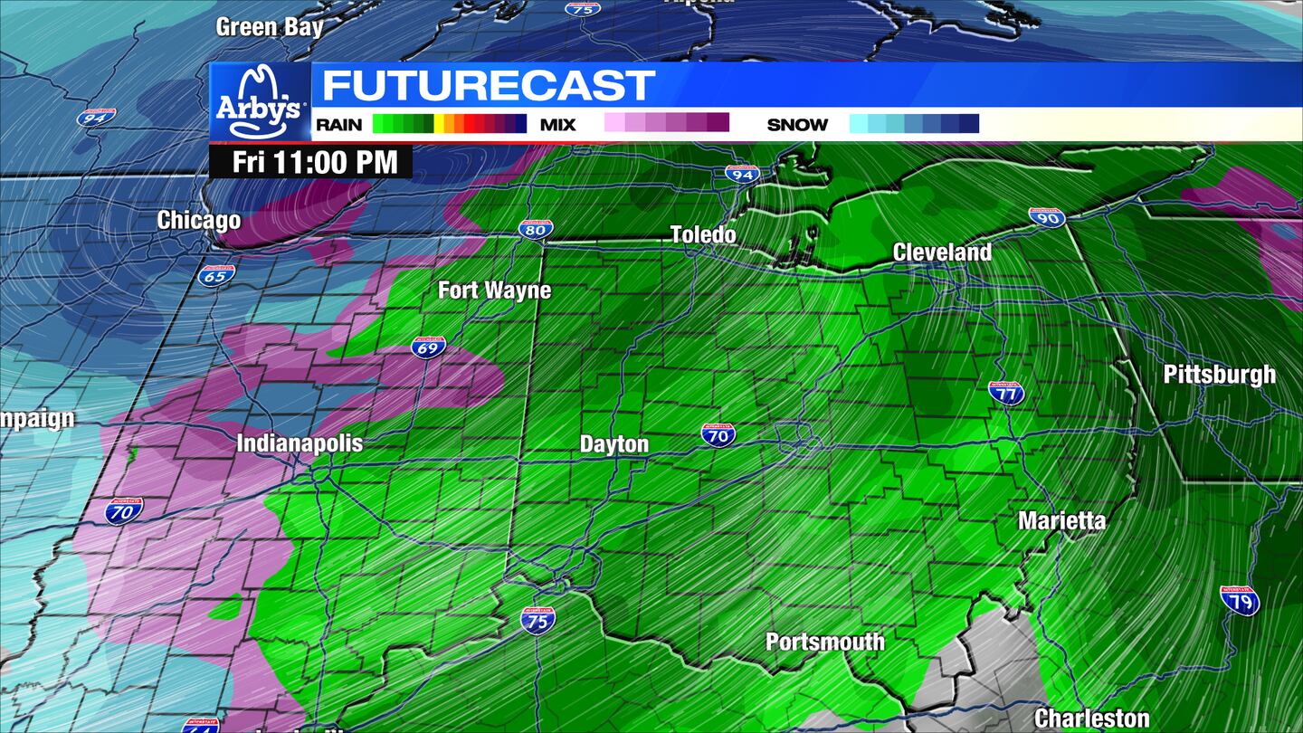 FRIDAY: A sloppy day is expected Friday. Precipitation may begin as a brief mix of rain, sleet, and snow Friday morning before quickly changing to all rain Friday afternoon.