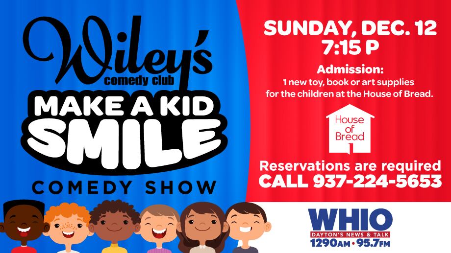 Join WHIO Radio’s Larry Hansgen at Wiley’s Comedy Club on Sunday, December 12th for the annual “Make A Kid Smile Comedy Show”. The show will start at 7:15 PM and collect toys for the kids who visit the House of Bread.